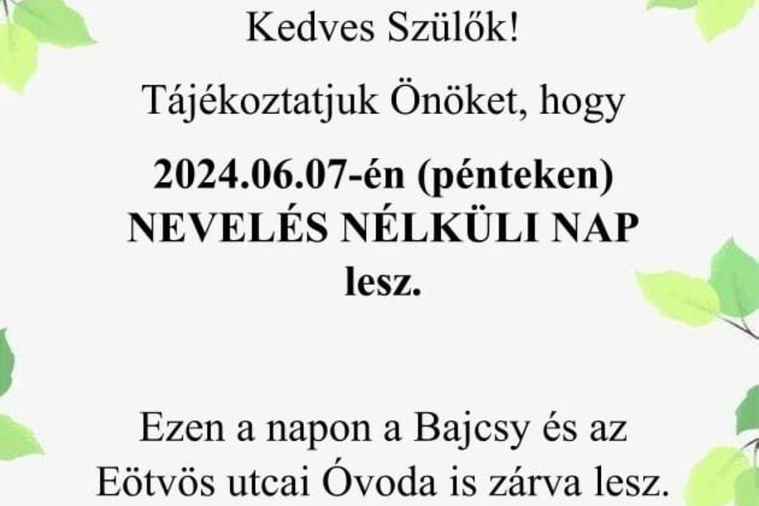 Kedves Szülők! 2024.06.07-én nevelés nélküli nap lesz.